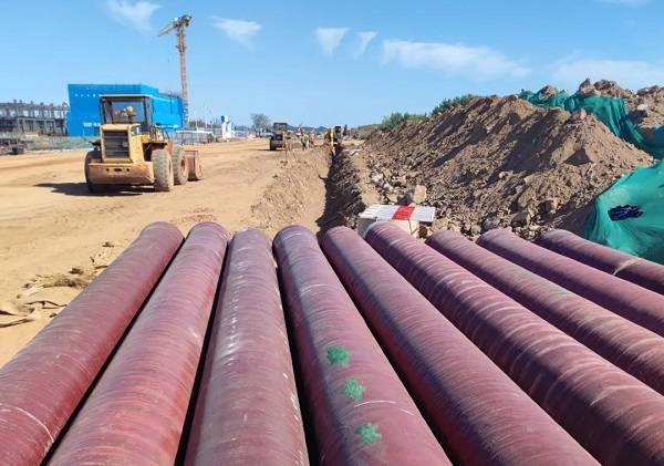 近日,中林集團所屬中林鑫宙公司指導生產的DN600竹纏繞復合管道在山東省煙臺市芝罘區芝罘灣一期市政工程建設中正式開始敷設。煙臺市芝罘區芝罘灣一期市政工程作為煙臺藍天集團海上世界片區的首開項目,以支撐和引導城市可持續發展為目標,充分吸納綠色低碳新技術、新應用,探索市政設施不斷創新。中林綠色低碳產品在煙臺推廣早有成功案例,2022年12月中林竹纏繞復合管道首次應用在煙臺市新港路排水排污工程,2023年 -