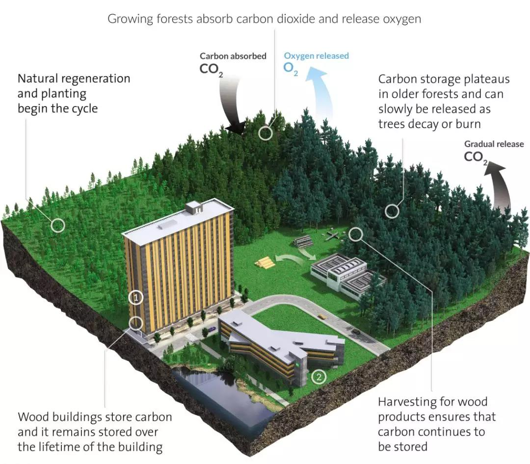 可以將二氧化碳永久固定在木結構的建筑形態中