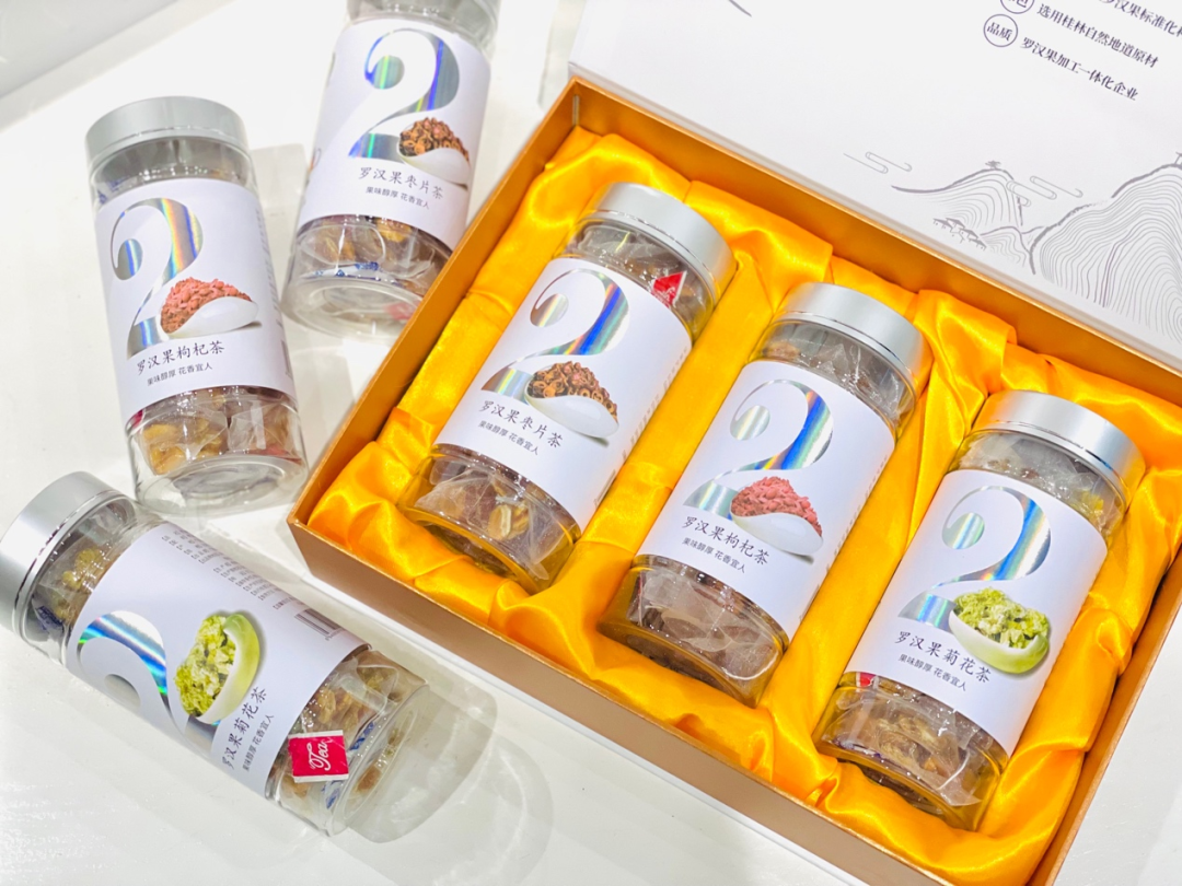 “中林山寶”花茶禮盒集合了羅漢果菊花茶、羅漢果棗片茶,以及羅漢果枸杞茶,其以袋泡茶的形式讓更多人能夠更方便地品味羅漢果茶飲。這三款茶飲具有利咽保護嗓子、清肺止咳等功效,且從原材料到產品生產,均嚴格按照食品安全有關標準加工生產。