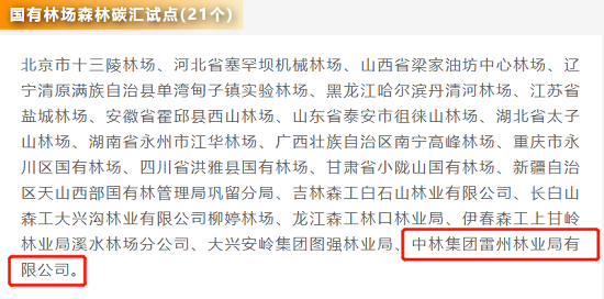 國有林場森林碳匯試點(21個)