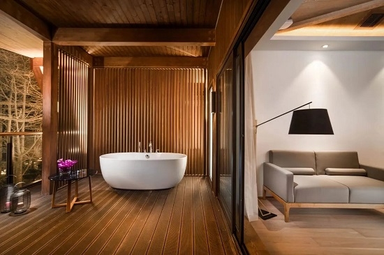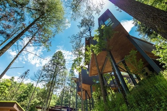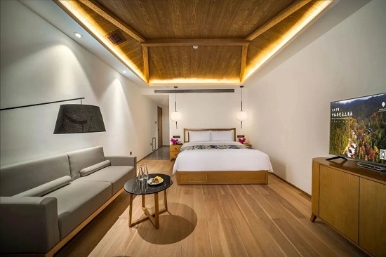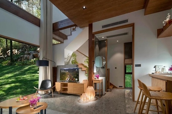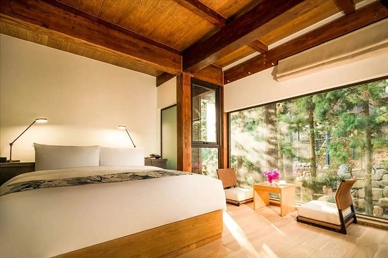 酒店將體驗(yàn)式度假與生態(tài)環(huán)境完美融合,森林覆蓋率達(dá)90%以上,負(fù)氧離子含量比城市高出1100多倍。推開(kāi)窗便能置身于原始純粹的大自然中。依托天然“曲水流觴”式生態(tài)地貌,沿線打造5大主題度假別墅群。隱世山林之中,潺潺溪水伴隨著悅耳鳥(niǎo)鳴,仿佛與世隔絕,于自然奢華中尋求心靈的治愈。