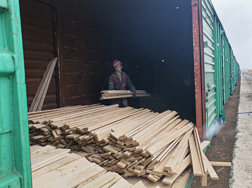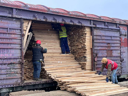 天氣突變 堅持作業 4月19日,內蒙古滿洲里下了一場春雪,林場集團所屬滿洲里伊利托基地現場部工人冒著風雪,在寬軌1道,執行俄羅斯棚車散裝木材卸車任務。工人清晨5點開工,經過一天緊張有序的作業,晚上19點圓滿完成57節車廂的卸車任務。(攝影:張震)