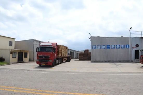 仲夏時節,秀嶼港區莆頭港,萬方堆場,巨木高壘。一墻之隔,一期占地487畝的福建省國林木材產業園內,叉車往來繁忙,將一摞摞木托盤整齊裝車,發往國內各地。
