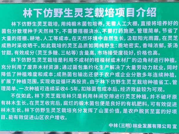 中林三明公司積極探索共享林下經(jīng)營模式,充分利用林下中藥材多花黃精種植先驅(qū)經(jīng)驗(yàn),于2023年5月中旬在將樂縣??诖宥嗷S精種植基地套種仿野生椴木紫靈芝,打造了集多元化于一體的小型循環(huán)生態(tài)系統(tǒng)基地,共完成種植3000余株,以點(diǎn)帶面,將逐步擴(kuò)大種植面積,成為輻射周邊地區(qū)的示范基地?,F(xiàn)種植的仿野生椴木紫靈芝部分已進(jìn)入成熟期,后續(xù)將陸續(xù)開展靈芝的采收工作。