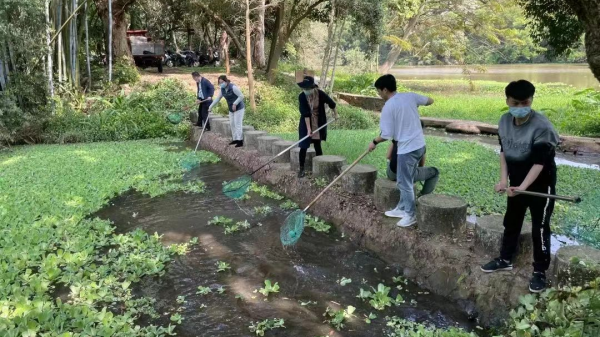 中林生態城始終保持對良鳳江公園段水文情況的監測,定期打撈鳳眼蓮(別名“水葫蘆”)、大薸(別名“水浮蓮”),協同政府職能部門做好河道管理工作。
