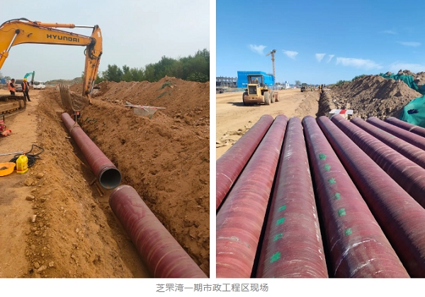 近日,中林集團所屬中林鑫宙公司指導生產的DN600竹纏繞復合管道在山東省煙臺市芝罘區芝罘灣一期市政工程建設中正式開始敷設。